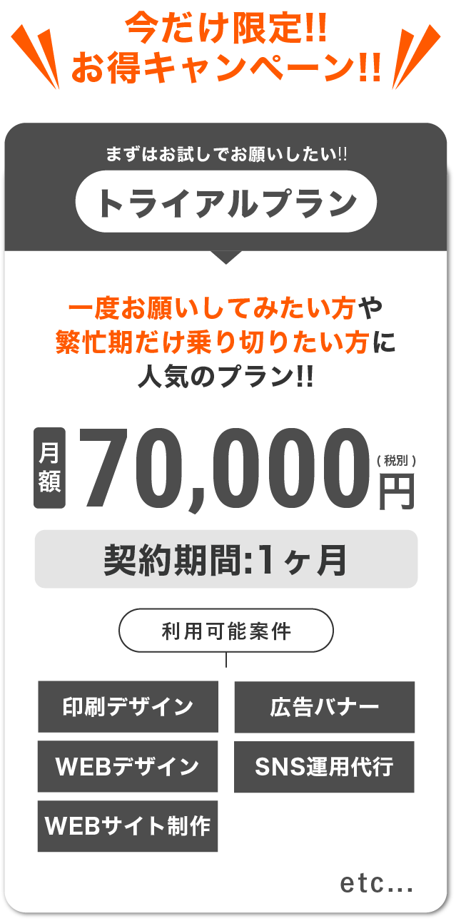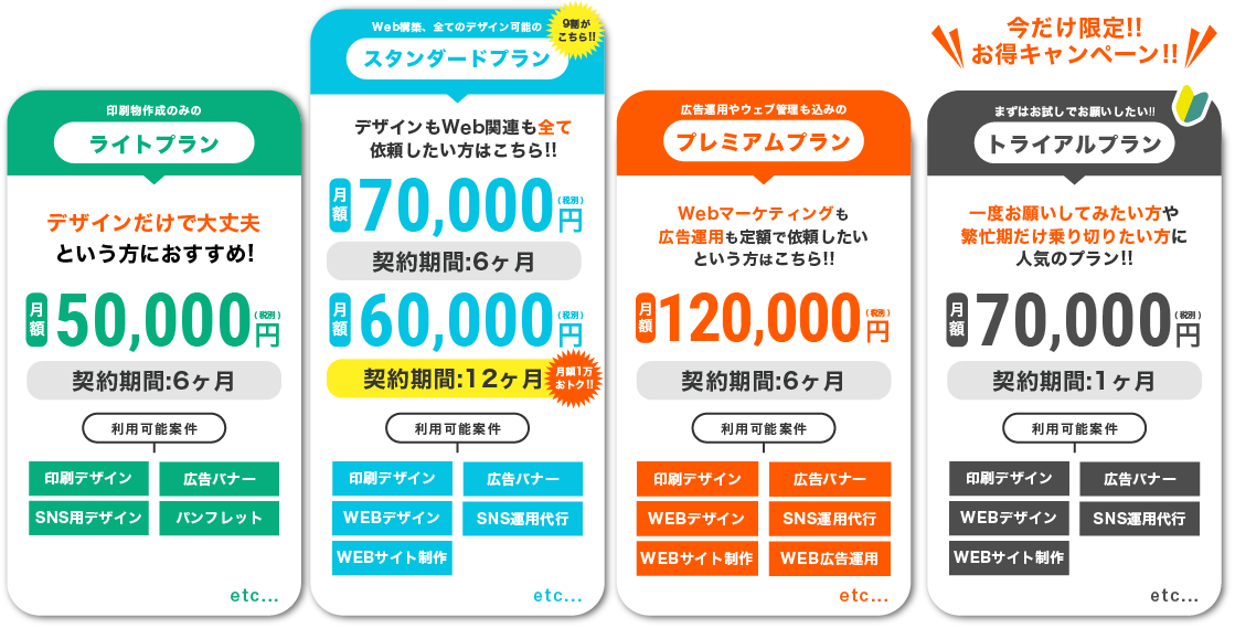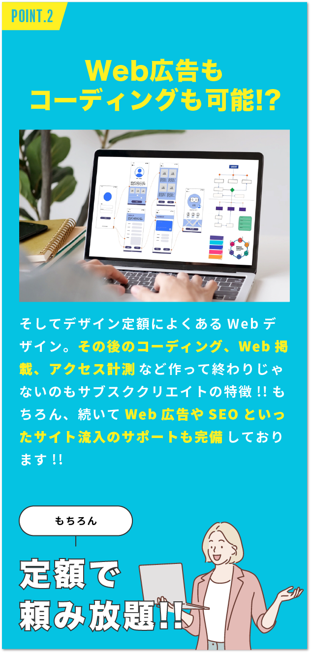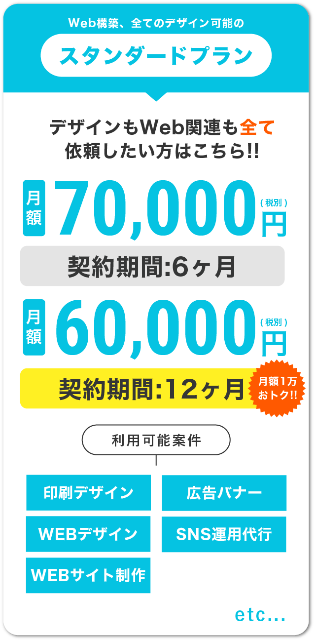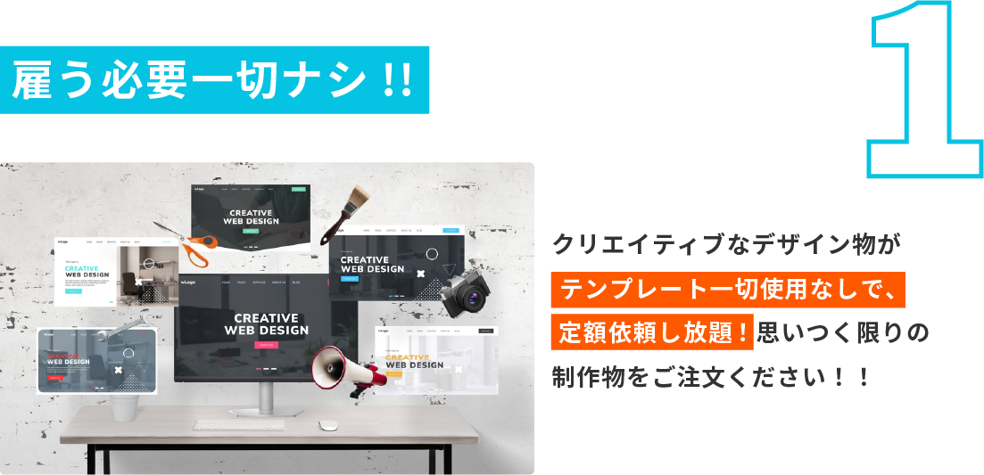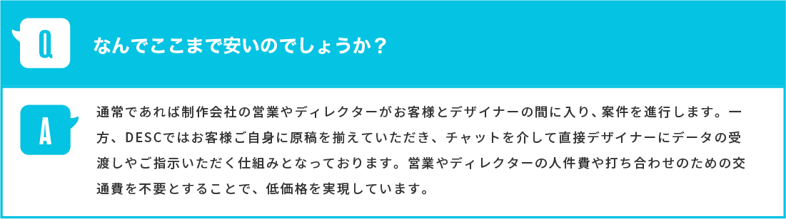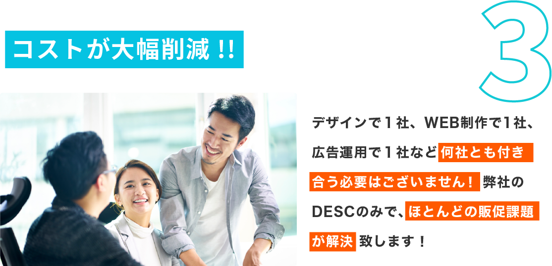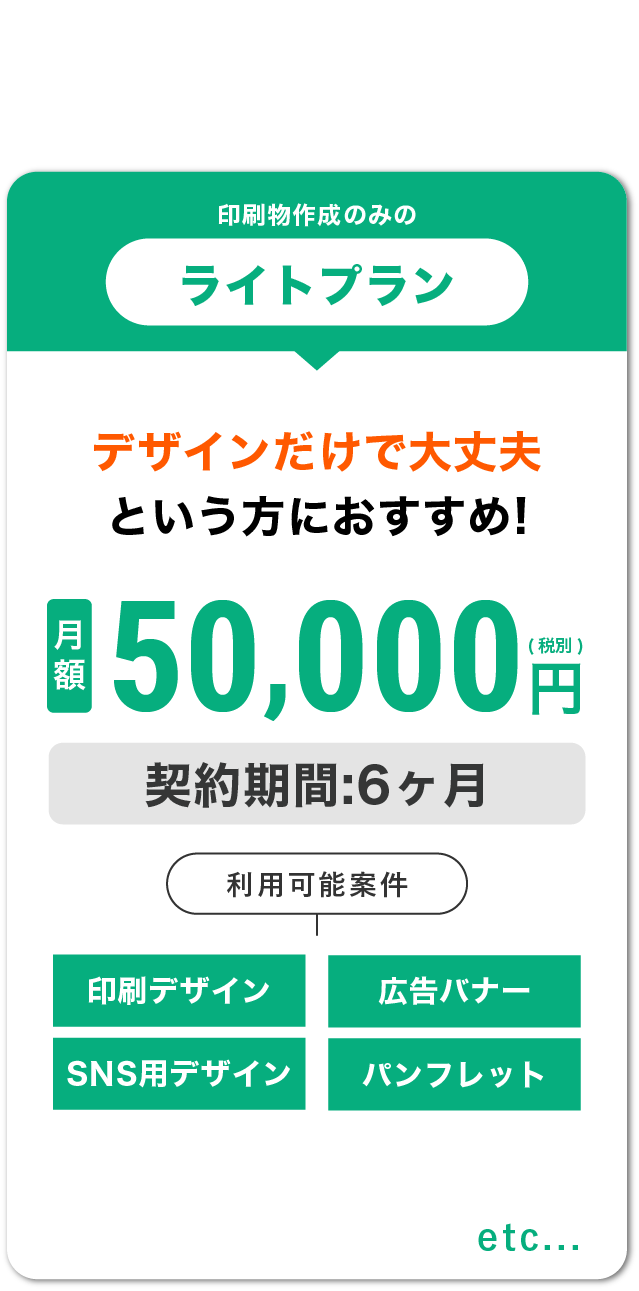 こんなお悩み、 ありませんか? 全て解決できます!! DESCは WEB構築WEBデザイン、印刷物まですべての デザイン制作を定額料金で頼み放題で 依頼できるサービスです!! どのプランも もちろん頼み放題! 当サイトでは、様々なデザインが 可能となっています。 印刷物からWebデザイン、広告運用も可能に。 その中の一部をご紹介しております。 当サイトでは、印刷物のみの方、コーディングもお願い したい方、広告もweb全般全てお願いしたい方へ向けた プランをご用意しております。 よくあるご質問 こんなお悩み、 ありませんか? 全て解決できます!! DESCは WEB構築WEBデザイン、印刷物 まですべてのデザイン制作を 定額料金で頼み放題で依頼できる サービスです!! 当サイトでは、様々なデザインが 可能となっています。 印刷物からWebデザイン、広告運用も可能に。 その中の一部をご紹介しております。 当サイトでは、印刷物のみの方、コーディングもお願いしたい方、広告もweb全般全てお願いしたい方へ向けたプランをご用意しております。 よくあるご質問 まずはお気軽に無料 お問い合わせ‼︎ 必須お名前 必須メールアドレス 必須電話番号 お問い合わせ内容 スパムメール防止のため、こちらのボックスにチェックを入れてから送信してください。 まずはお気軽に無料 お問い合わせ‼︎ 必須お名前 必須メールアドレス 必須電話番号 お問い合わせ内容 スパムメール防止のため、こちらのボックスにチェックを入れてから送信してください。